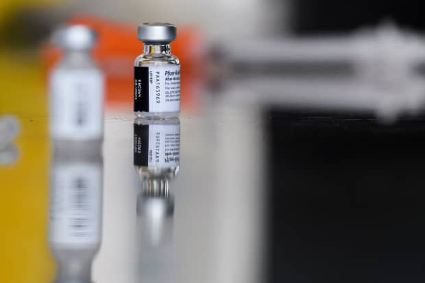 Pfizer's COVID-19 vaccine vials are seen at a mobile vaccination clinic in Los Angeles.